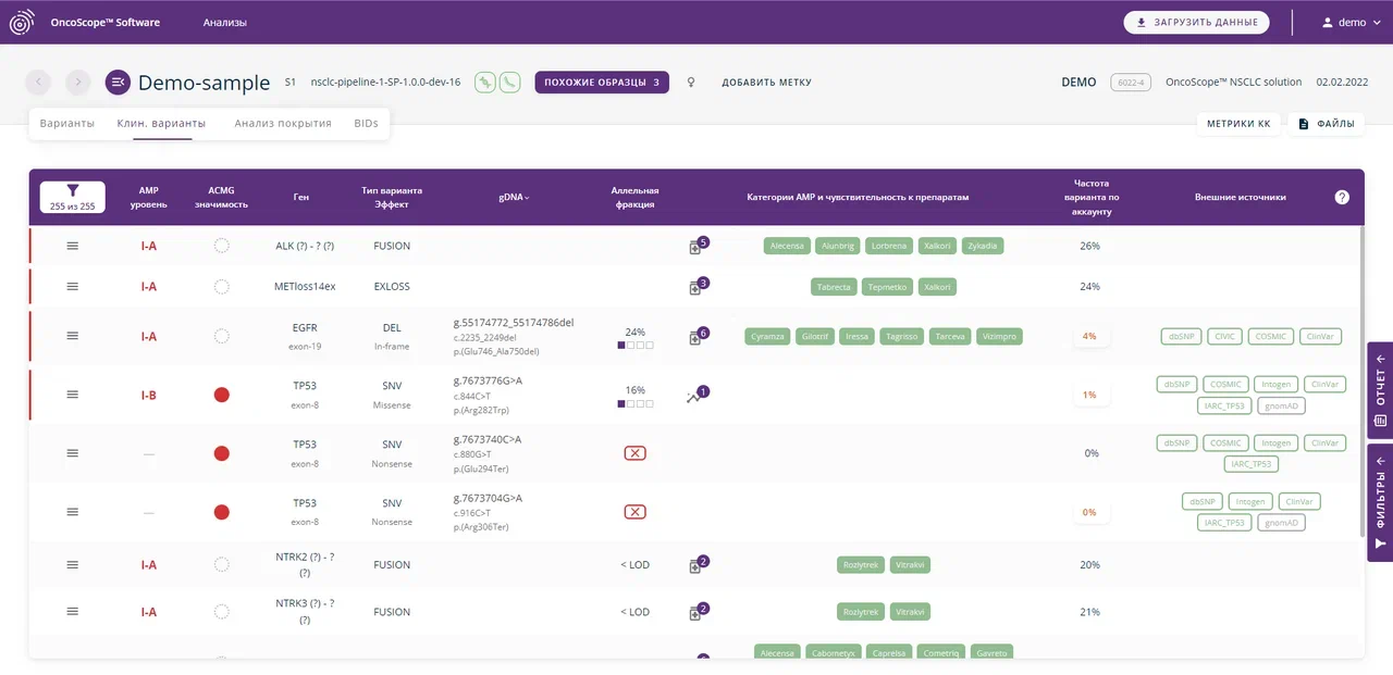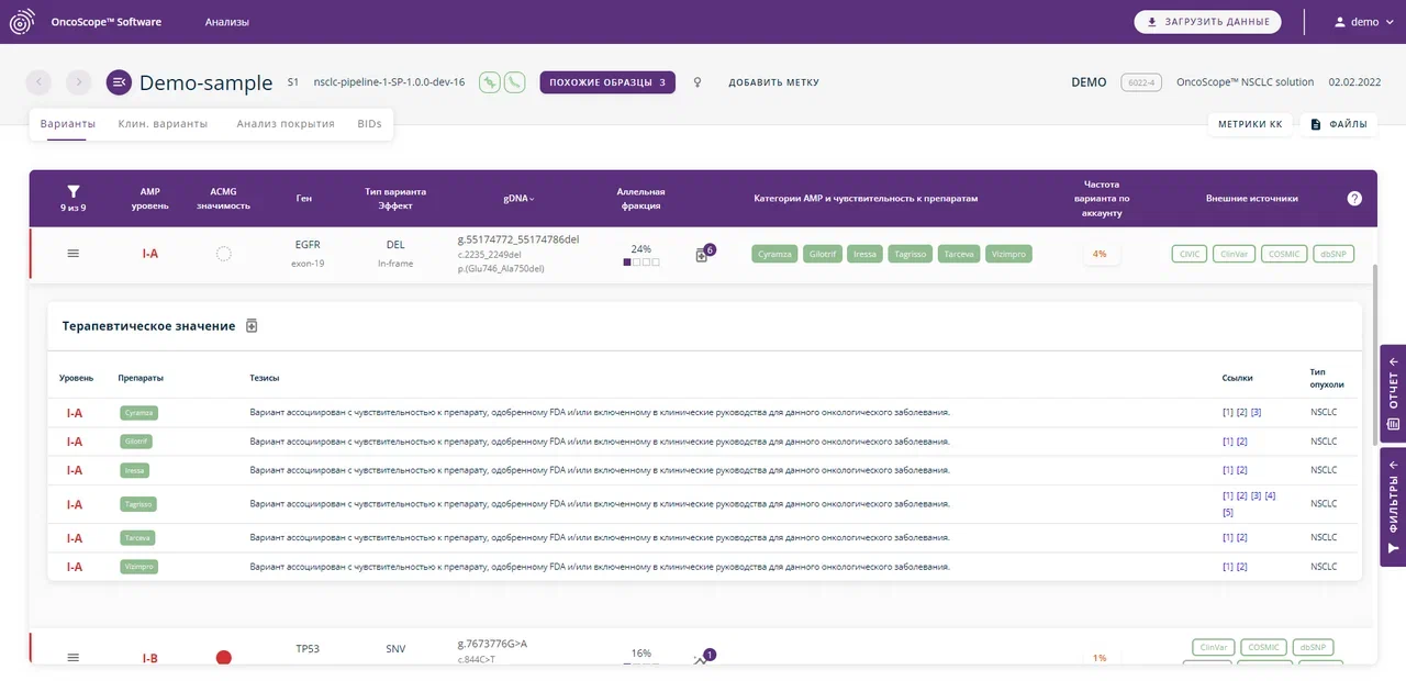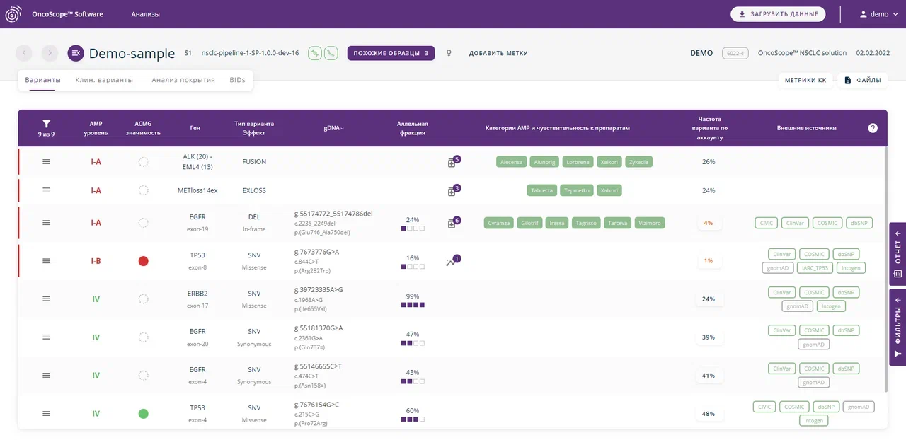 Ссылки на внешние базы данных dbSNP, ClinVar, COSMIC и прочие;