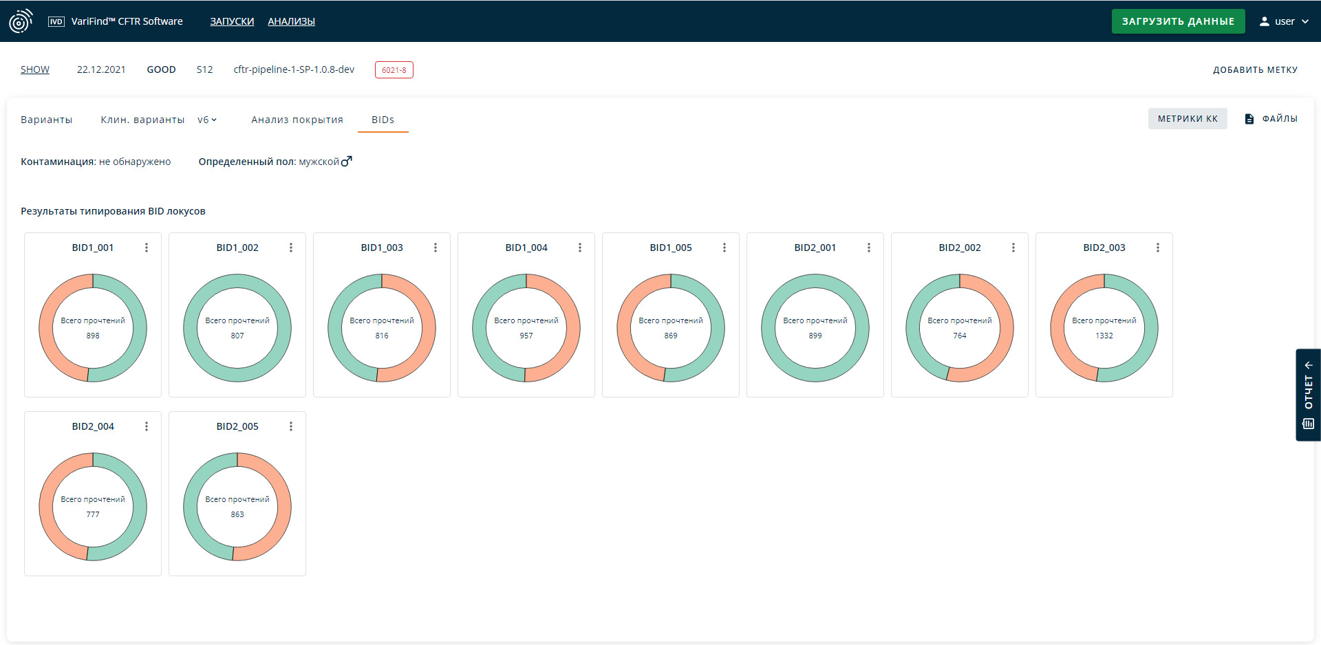 В тест-систему VariFind™ CFTR Solution включены биологические идентификаторы BIDs — ампликоны на вариабельные участки генома. Гаплотип по BIDs маркерам является относительно уникальной характеристикой образца, и позволяет детектировать наличие контаминации. BIDs маркеры на половых хромосомах позволяют определять пол образца.