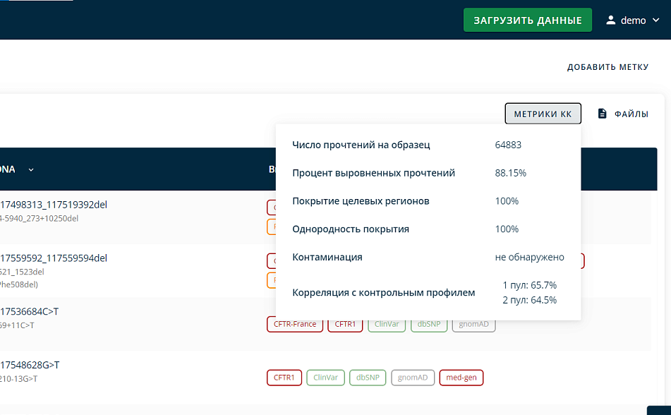 Исследователь всегда может проконтролировать лабораторный этап, по исчерпывающим метрикам качества. Дополнительную информацию можно получить по выгружаемым файлам и встроенном геномном браузере.